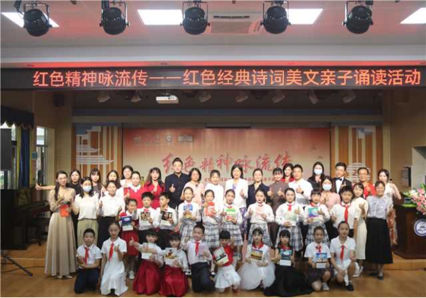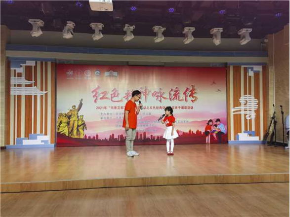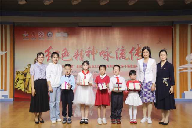 舞臺(tái)上,或父親和孩子,或母親和女兒,也有父母與孩子同臺(tái),一個(gè)個(gè)親子家庭手牽著手走上舞臺(tái),用真誠(chéng)的聲音,誦讀著一篇篇紅色經(jīng)典作品,有的深情款款,有的激情四溢,有的則溫馨默契,他們以誦讀為橋梁,傳遞親情和愛(ài),以經(jīng)典為載體,傳承紅色精神。