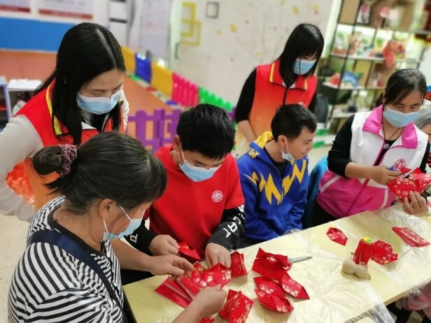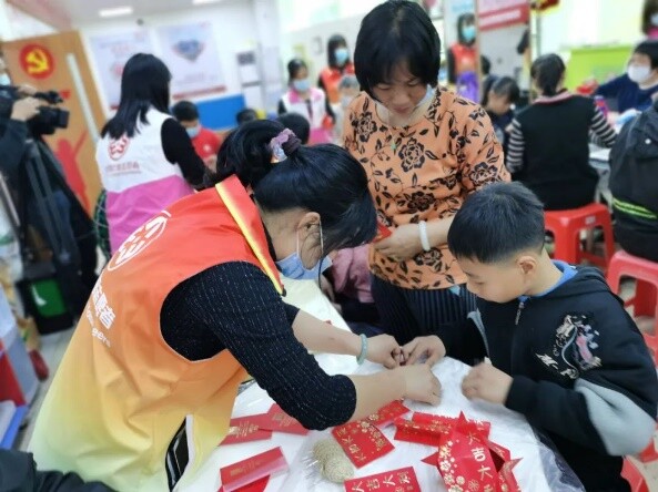為大力弘揚春節(jié)的優(yōu)秀傳統(tǒng)文化,迎接新的一年,讓婦女兒童一起感受春節(jié)喜慶祥和的氣氛,南沙區(qū)大崗鎮(zhèn)婦聯、婦女兒童之家、家長學校聯合社工服務站于2021年1月24日在黨群服務中心婦女兒童之家開展“迎牛年紅包魚燈籠手工制作暨送揮春”活動,活動共吸引20對轄區(qū)基層親子家庭參加,獲得9位志愿者支持與協助,南沙區(qū)大崗鎮(zhèn)婦聯副主席陳尚韻、兼職副主席彭慧全程參與協助和交流指導.